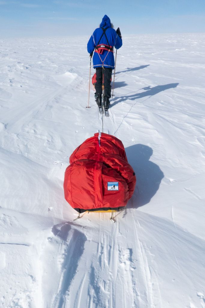 Tahali jsme saně po tvrdém sněhu v následujících cyklech. 0.75 námořní míle, které nám zabralo asi 30 minut, pak 2 minuty pauza ve stoje, pak další 0.75 námořní míle a 10 minut přestávka. Během té přestávky jsme si sedli na sáně, vyndali jídlo, které jsme nesli na těle, aby nezmrzlo, napili se, upravili rukavice, nebo nějaké kusy vybavení a když jsem měl štěstí, tak jsem ještě stihl pár fotek. A zase na cestu. Za průměrný den jsme tak ušli 8-9 námořních mil (cca 16 km) vzdušnou čarou směrem k pólu. To byl způsob, jak jsme měřili náš progres. Pak okamžitě rozdělat stany, vykopat lopatou díru v předsíňce, vykopat záchod (Dean se ukázal jako královský architekt antarktických záchodů), vyložit věci do stanu, rozdělat vařič, uvařit večeři, nahlásit polohu satelitním telefonem, probrat strategii na další den a pak byla tak hodinka volného času před spánkem, kdy jsem si četl o Antarktických dobrodruzích.