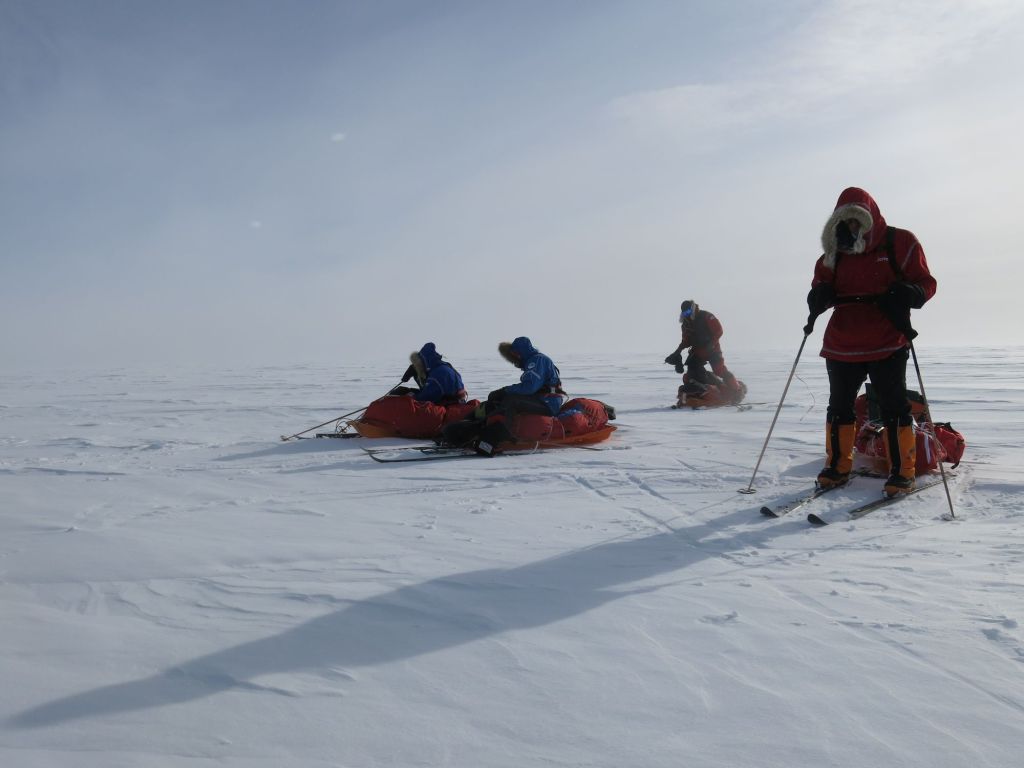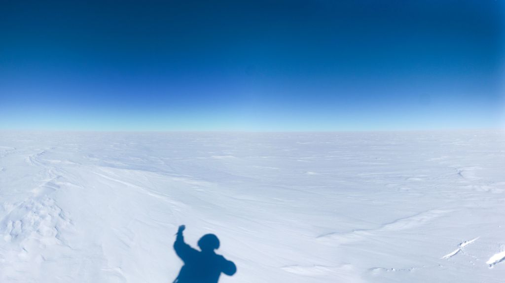 Moc jsem si tak výhledů kolem neužil. Ale ono ani nebylo moc co. Krajina je kolem pólu monotónní. Nekonečná rovná sněhová placka, bez jakékoliv zajímavé topografie. Bílá poušť. Neustále fouká a mrzne. Nic tu nežije, zvířata jsou nejblíž 1500 km. Nikoho jsme nepotkali. V této mrtvé krajině jsme se pohybovali jen my. Jen my a naše stíny.