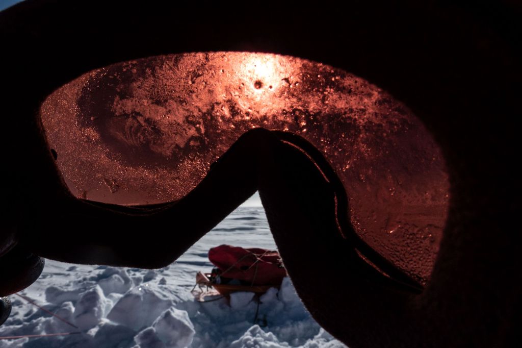 Další bylo zajímavé, co všechno v těchto mrazech zmrzne. Například voda s energy drinkem v plastové lahvi s těsnícím rukávem vydržela asi 5 hodin, voda v termosce nezmrzla po celý den, ale to bylo tak vše. Baterie do foťáku jsem měl v malé kapsičce na těle nonstop; oční kapky zmrzly; sýry, salámy, čokolády zmrzly; GoPro zmrzlo atd. Jídlo jsme tedy museli nosit u těla, což komplikovalo jeho vyndávání na přestávkách a vyžadovalo sundání si rukavic. Vůbec nejhorší ale byly moje lyžařské brýle. Ty se mi každé ráno zamlžily a zmrzly a já pak celý den šel tak, že jsem viděl jen skrz malým nezmrzlým kouskem konce saní toho přede mnou. Nebylo možné je rozmrazit. Zkoušel jsem na ně dát zubní pastu (pomáhá při potápění) ale nebylo přes ní vidět, sliny zamrzly a žádné rozmražování v tom mrazu nevydrželo. Jakmile jsem je zadýchal abych je vyčistil zmrzly znovu běhen jedné až dvou vteřin. Bylo to beznadějné.
