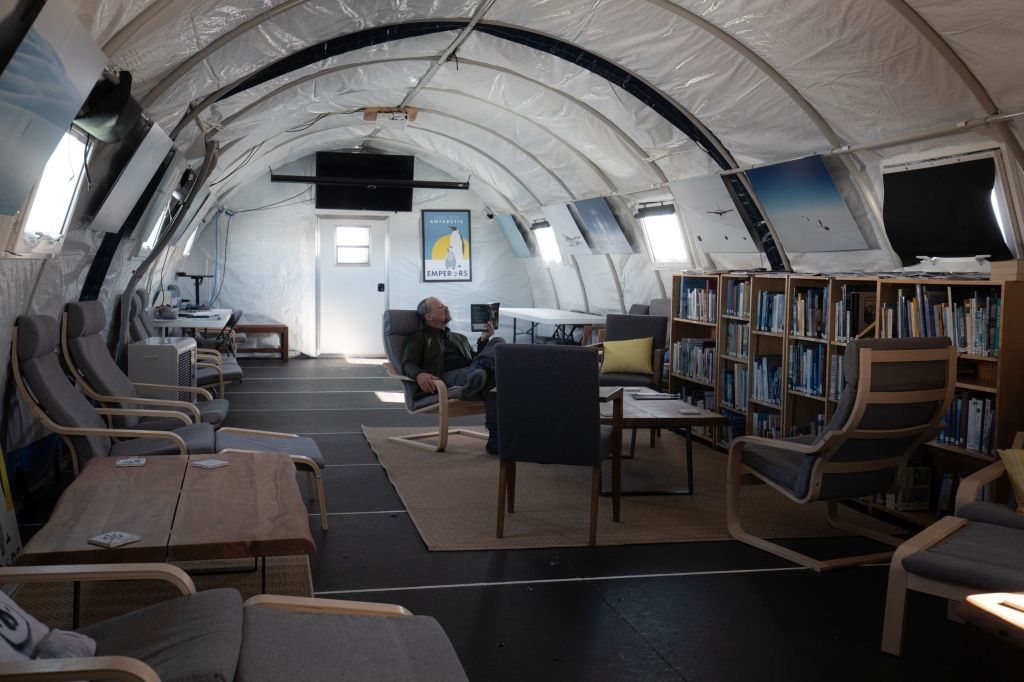 Zpět v Union Glacier mladíci, co tam základnu obsluhují chodili v péřovkách, v těžkých botách, se slunečními brýlemi a poslouchali hudbu z rádia. Bezmračný slunečný den. Působilo to jak na nějaké sjezdovce v Alpách. A my? My se svlékli do svetru, protože navzdory -10 °C teplotě jsme si připadali jako na té pláži.
