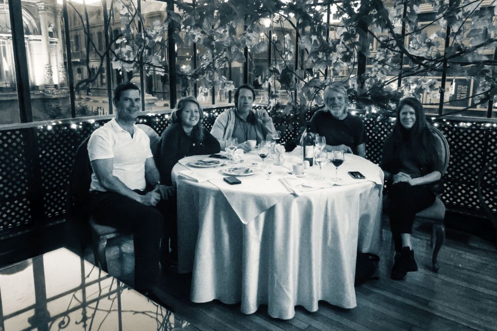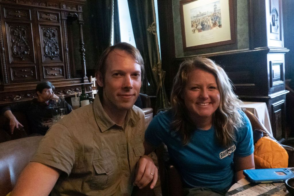 Na hotelu jsme si pak dali dlouhou teplou sprchu a odpočívali až do druhého dne, který jsme měli rezervní (dost malá rezerva při zpětném pohledu). Večer jsme se pak ještě potkali s Deanem, který pozval dvě mladé horolezkyně Mollie Hughes a Anja Blancha, jenž obě 29 let staré (Mollie o 15 dní mladší) měly bohaté zkušenosti s expedicemi. Obě na Antarktidě přecházeli půlku kontinentu. Mollie se tak stala nejmladší ženou, které takovou cestu podnikla. Mollie šla 58 dní s 105 kg saněmi. Též drží prvenství jako nejmladší žena, která vylezla Everest z obou stran. Anja mimo Everestu vylezla též na K2 a Broad peak. Najednou se náš výkon nezdál tak obdivuhodný. Ale zase nám to posunulo obzory. Bylo to velmi zajímavé setkání a příjemná večeře. Venku mezi tím probíhala nějaká demonstrace, která byla později rozprášena slzným plynem, jehož chuť bylo to poslední, co si pamatuji z Chile. Pak jsme se zabalili a vyrazili na dlouhou cestu zpět.