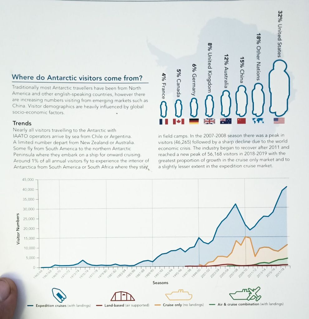 Na Antarktidu minulý rok přijelo 56 tisíc turistů, ale drtivá většina jen na lodích, případně na lodích, které dopravili turisty na pobřeží pozorovat tučňáky. Jen méně než 1 % turistů se dostane do vnitrozemí a většina z nich přijede do Union Glacier kempu. Toto léto, zde bylo 496 turistů. 170 z nich kvůli Mt. Vinsonu, 75 na „last degree“ expedici jako my, 60 přiletělo na Jižní pól letadlem, 55 zde bylo na maratonu, 50 pozorovat císařské tučňáky a zbytek na různé jiné aktivity a expedice v malých počtech.