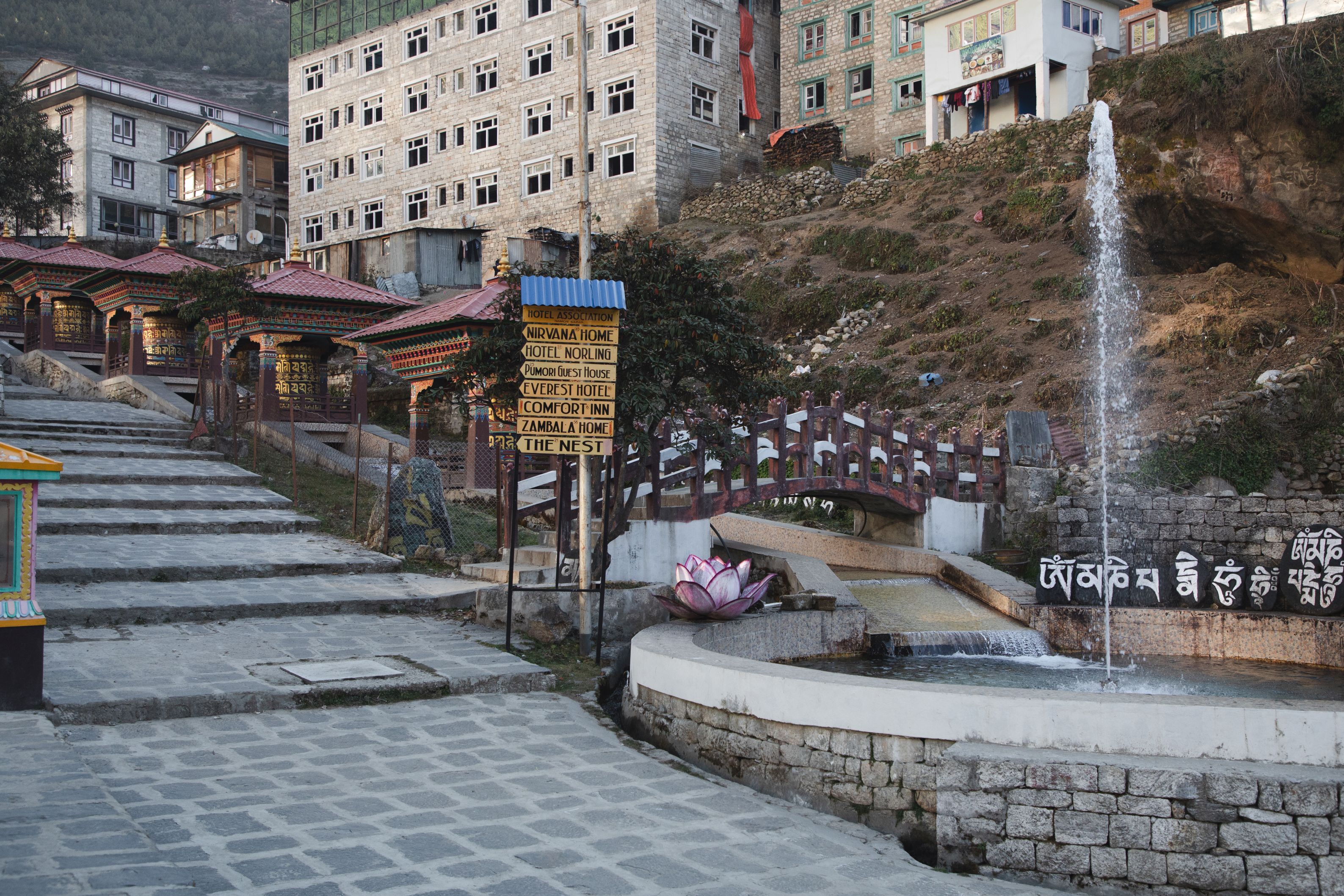 Namche Bazar se za těch 29 let od toho, co tu byli rodičové asi dost změnil. Určitě neměli u vstupu kaskádu s vodotryskem a též říkali něco o tom, že tam nebylo tolik baráků. Myslím ale, že atmosféra horské vesnice zůstala stejná. Aspoň teď, když tam bylo málo turistů a člověk mohl vidět běžný život Nepálců. Přespali jsme v třípatrovém hotelu, kde jsme byli téměř sami.