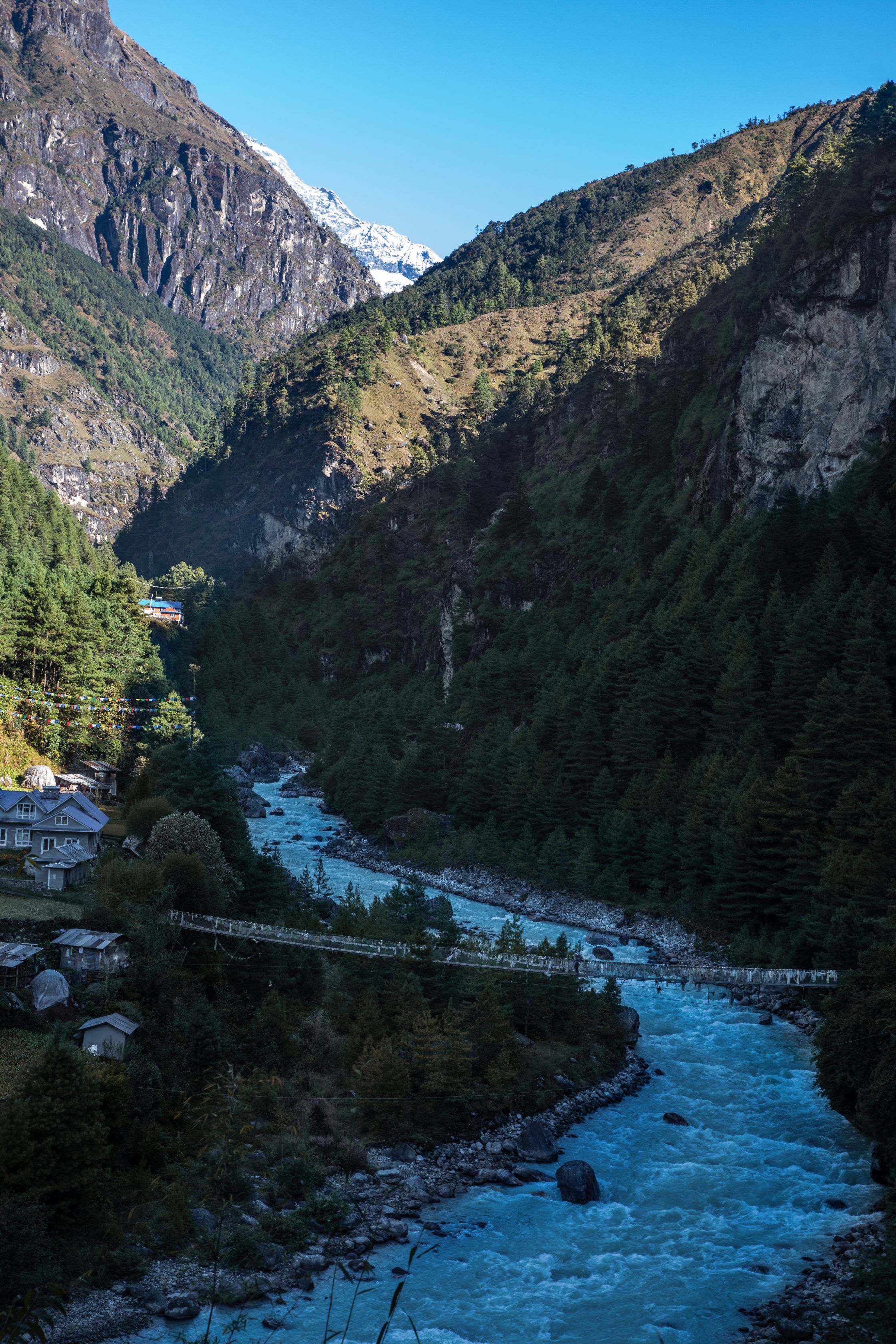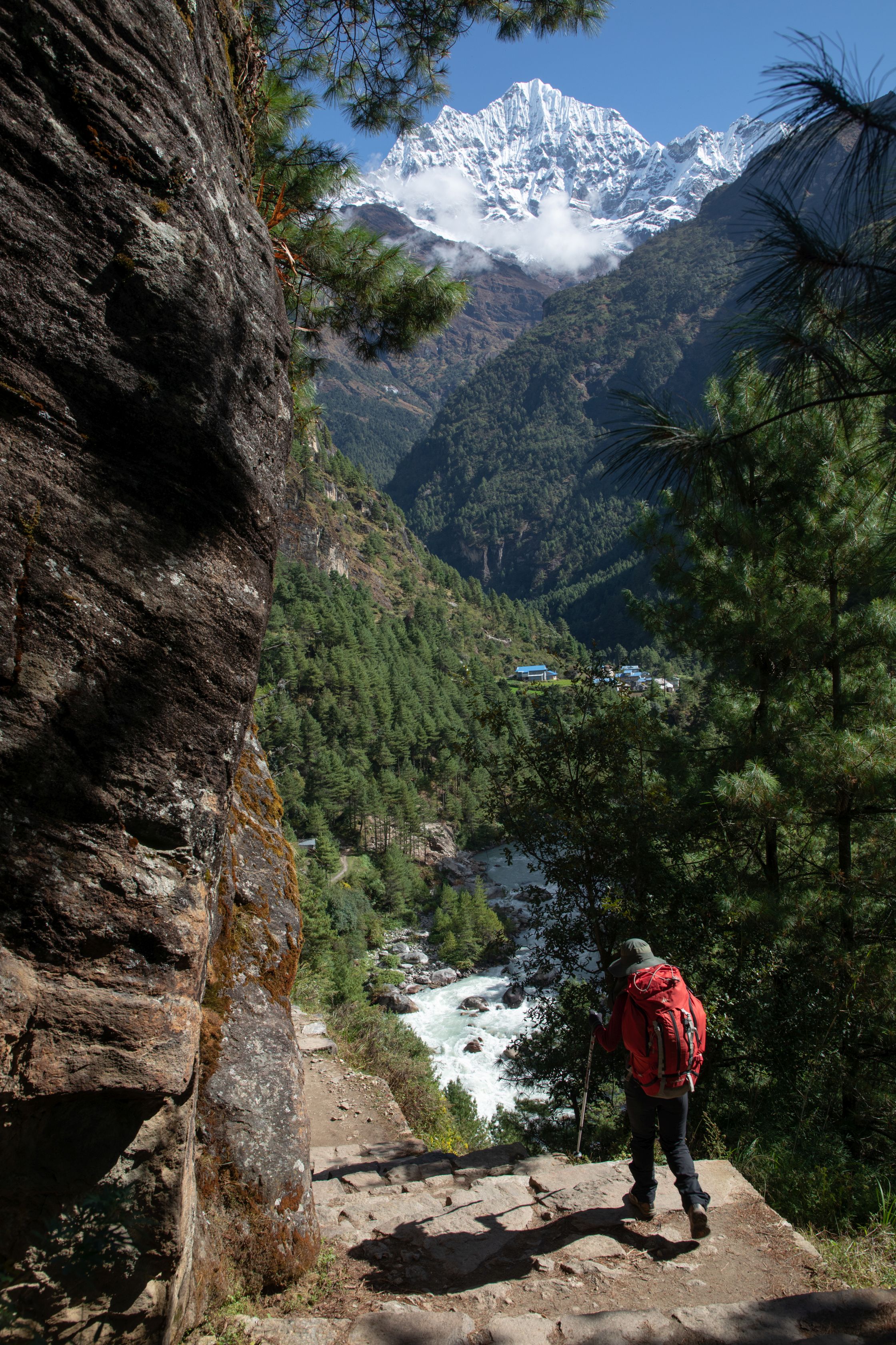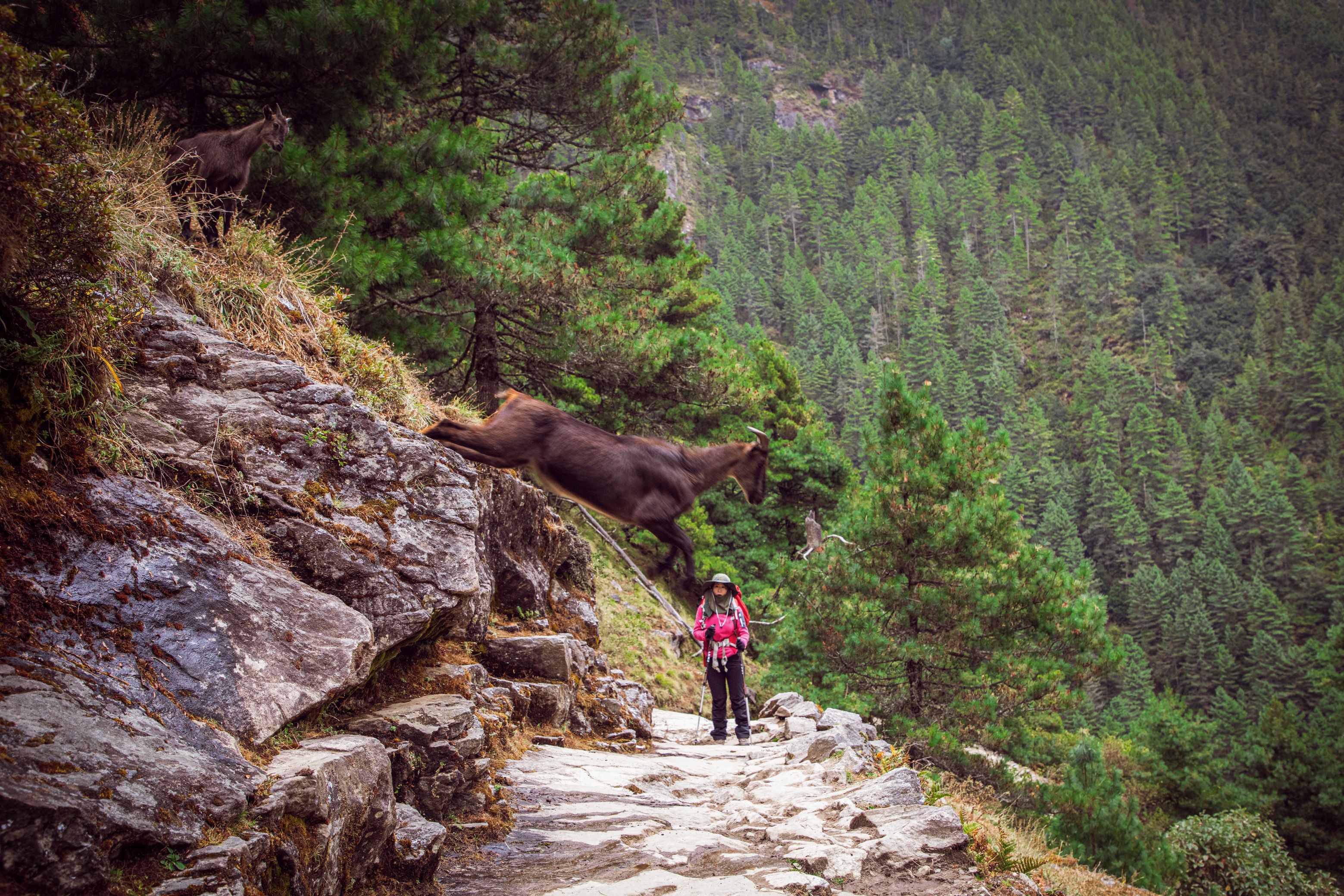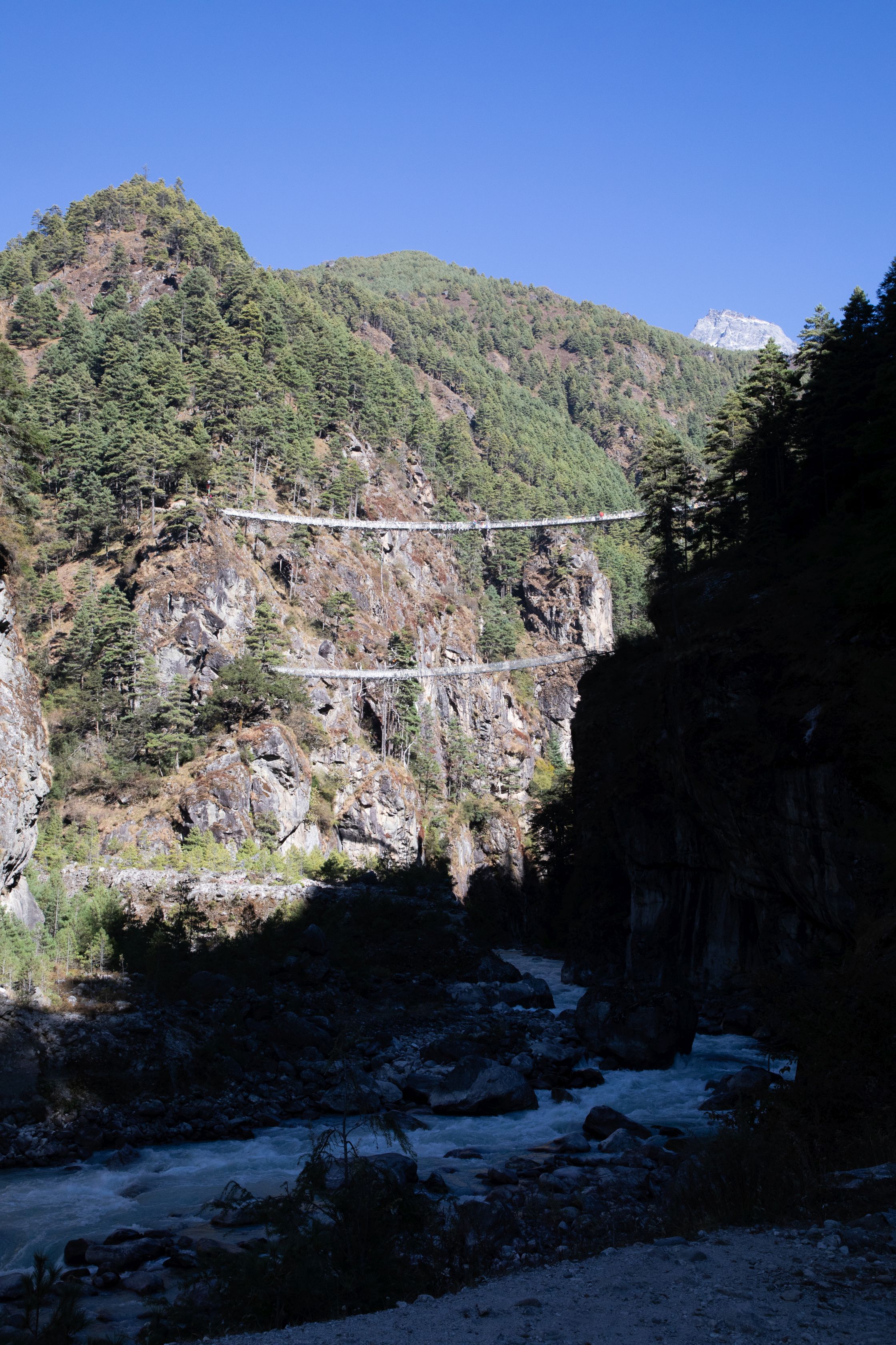 Druhý trekový den vedl cestou nahoru a dolu, převážně zalesněným údolím s občasnými výhledy na vysoké zasněžené hory a známými přechody řeky po zavěšených mostech do Namche Bazaru. Velmi příjemné klima, spousty nepálských vesnic a hlavně radost z toho, že jsme tu nám vytvořily skvělé podmínky, abychom si cestu užili, i když jsme po většinu času šlapali do kopce. Při závěrečném stoupáku s převýšením asi 400 metrů jsme potkali horské kamzíky, jak nám skáčou přes cestu.
