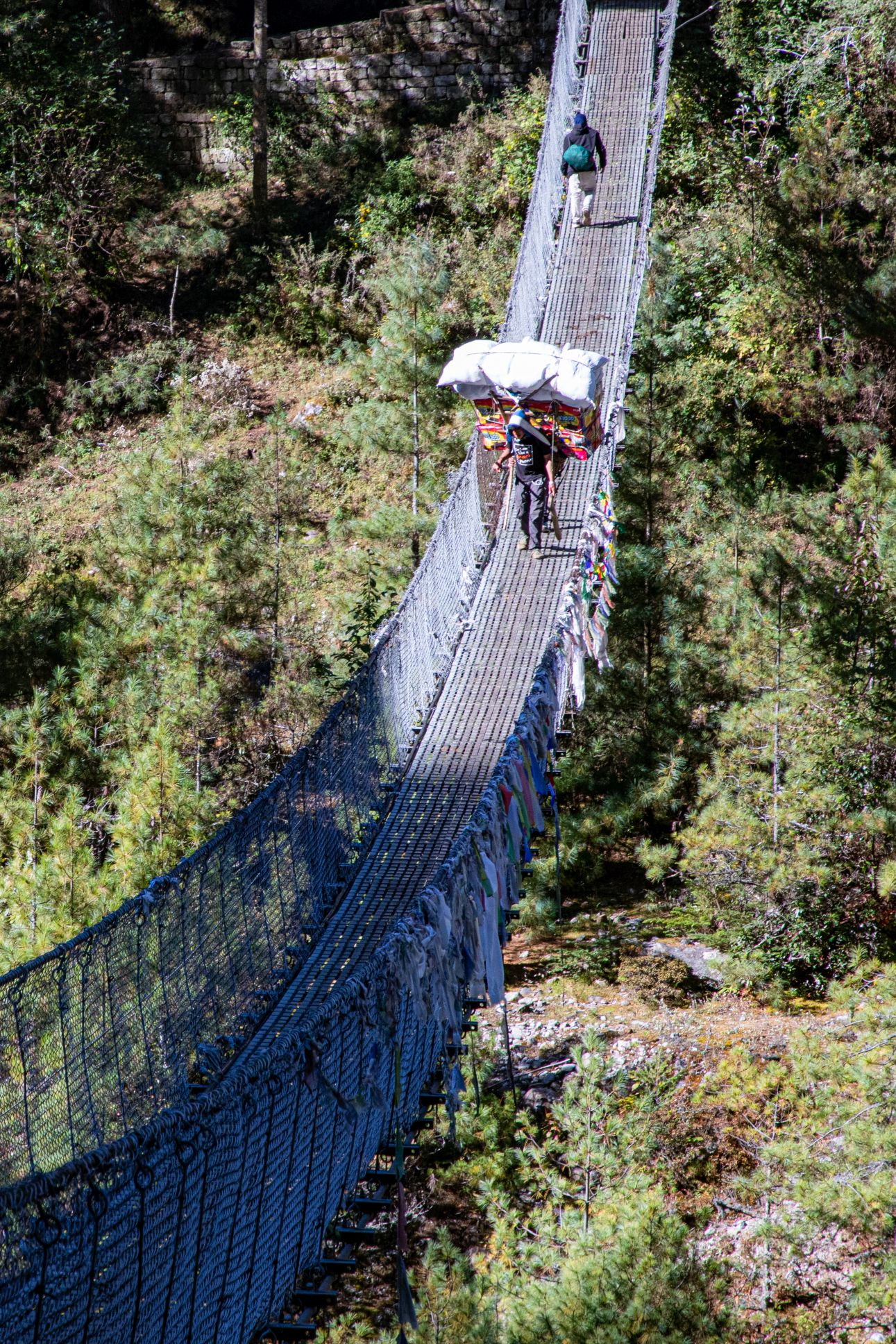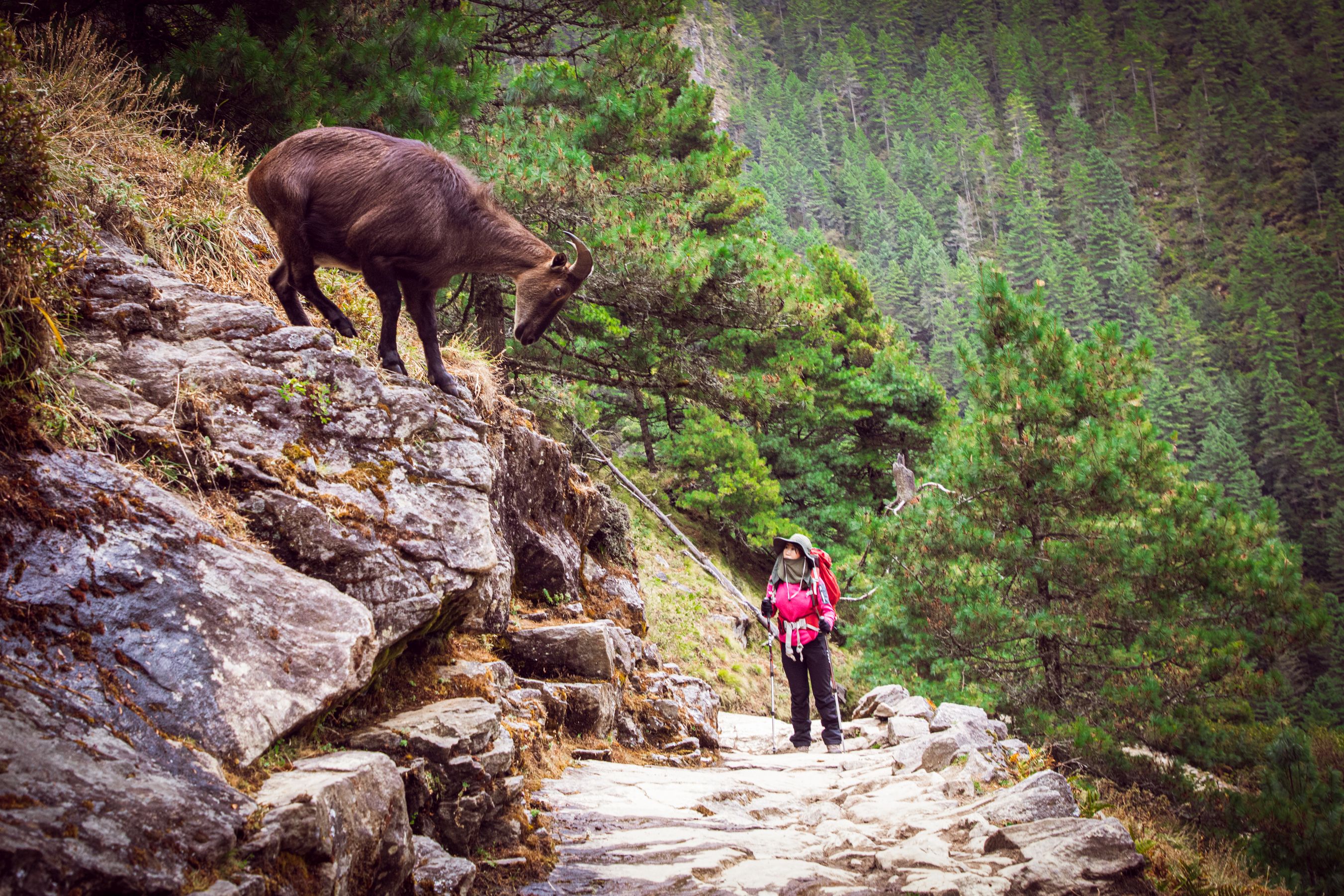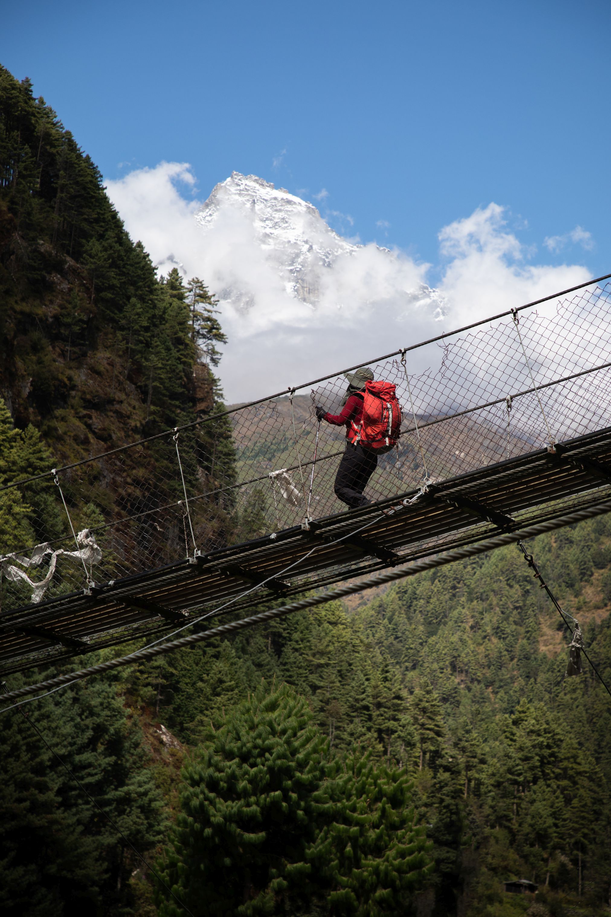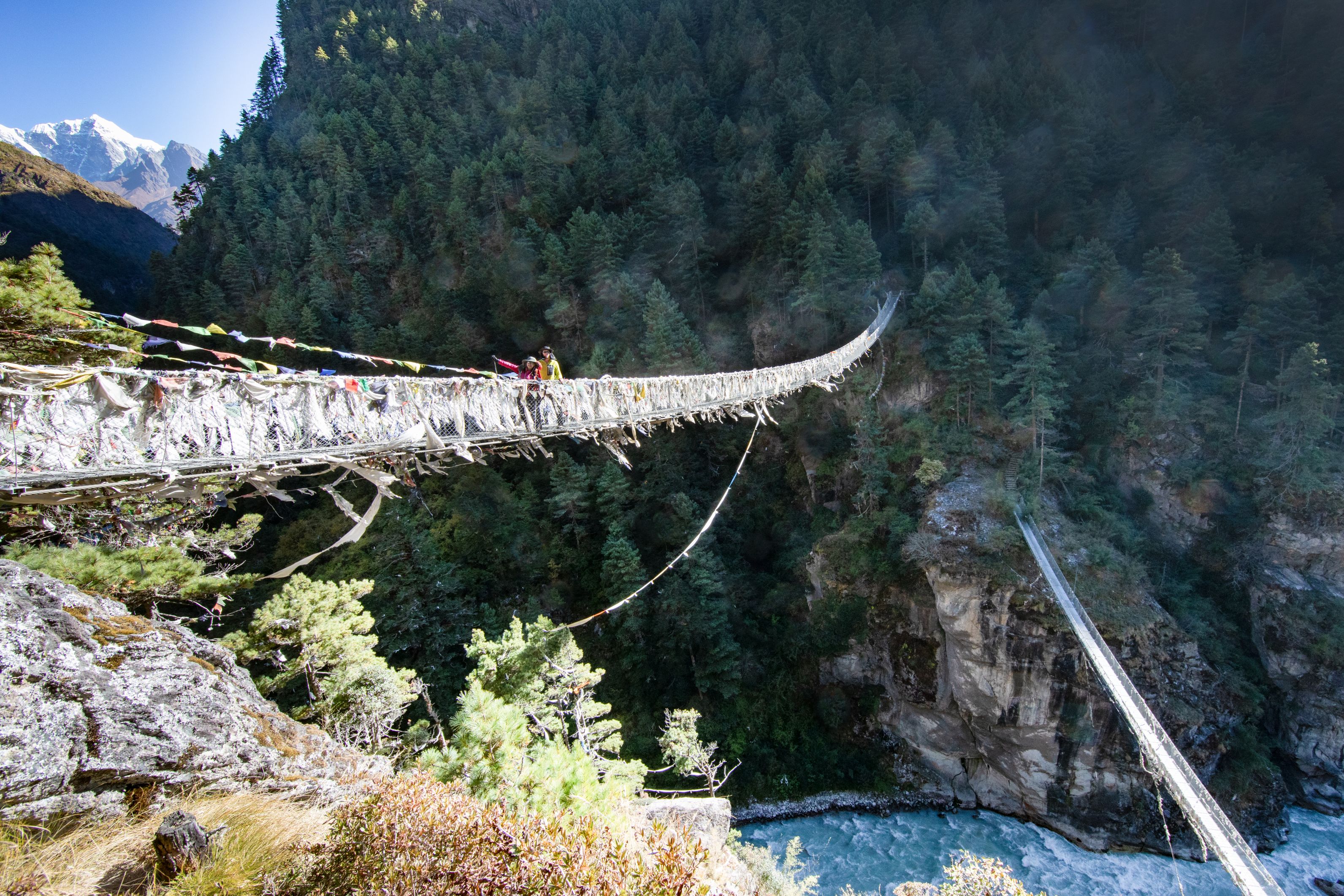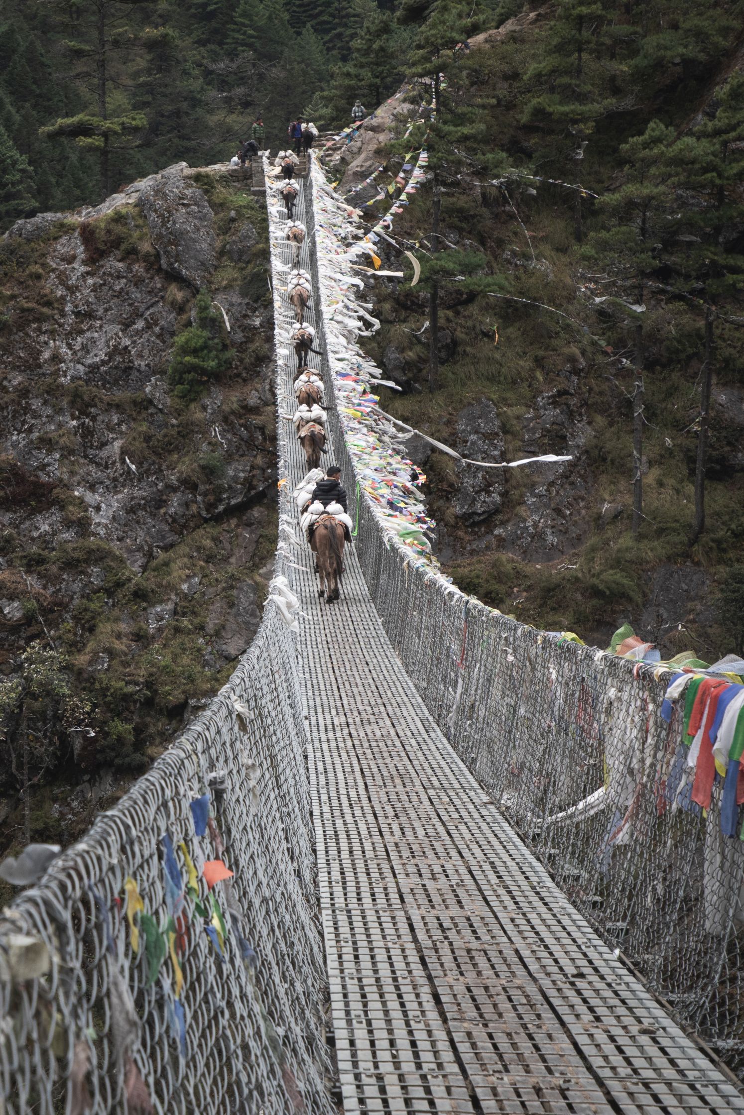 Druhý trekový den vedl cestou nahoru a dolu, převážně zalesněným údolím s občasnými výhledy na vysoké zasněžené hory a známými přechody řeky po zavěšených mostech do Namche Bazaru. Velmi příjemné klima, spousty nepálských vesnic a hlavně radost z toho, že jsme tu nám vytvořily skvělé podmínky, abychom si cestu užili, i když jsme po většinu času šlapali do kopce. Při závěrečném stoupáku s převýšením asi 400 metrů jsme potkali horské kamzíky, jak nám skáčou přes cestu.