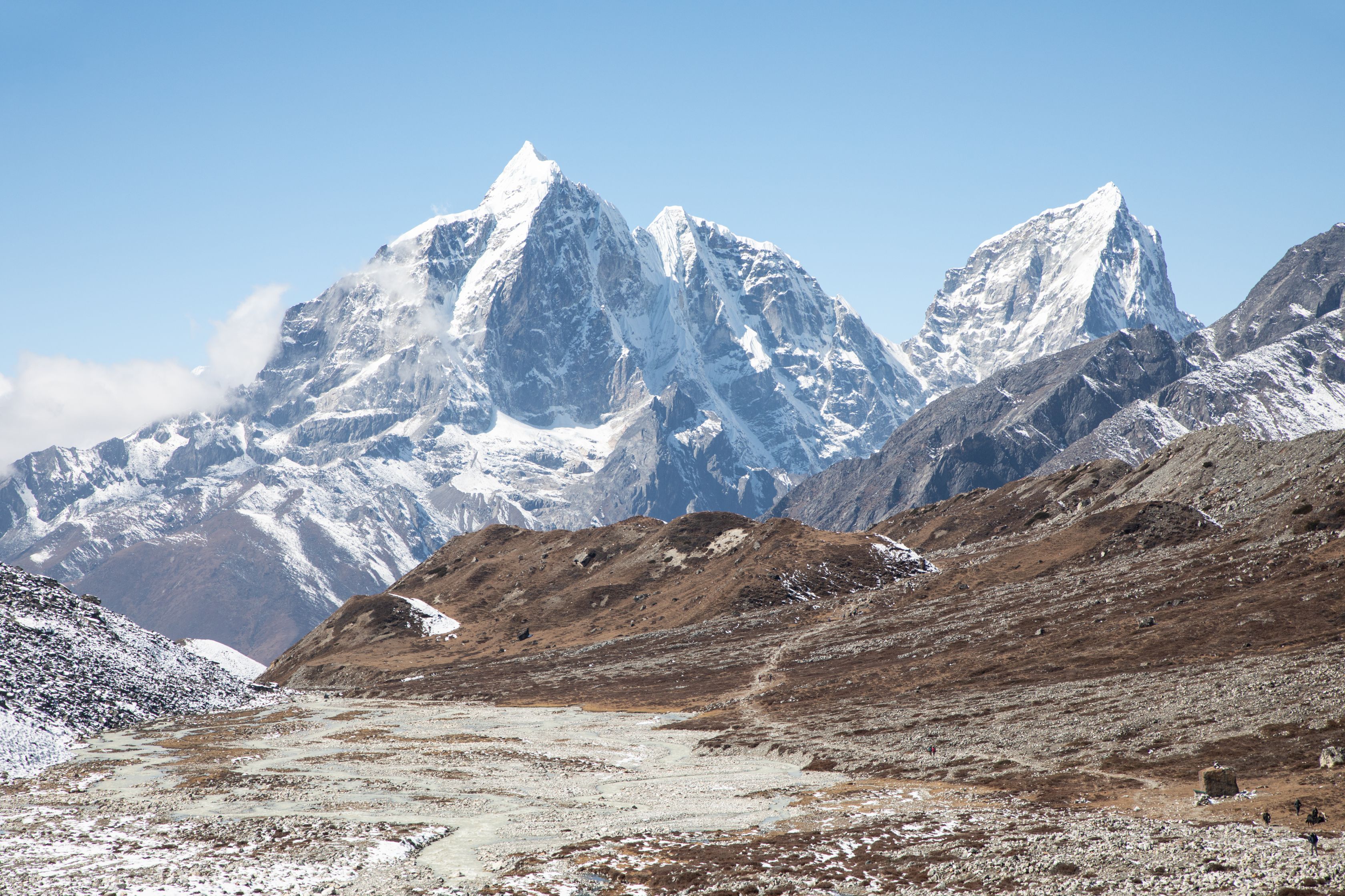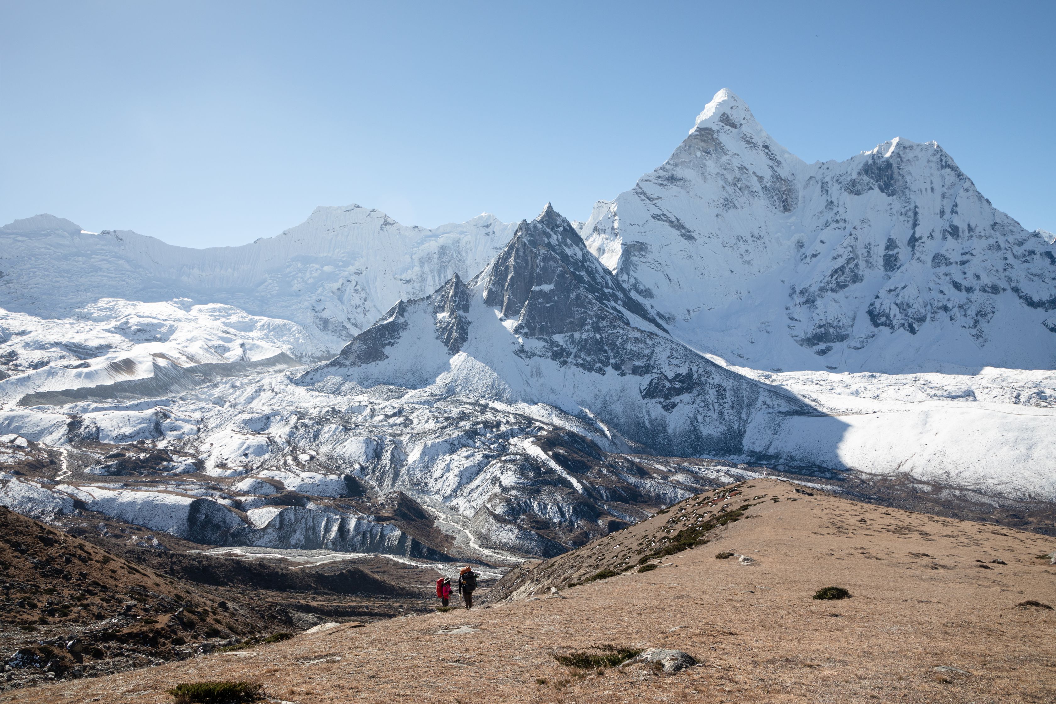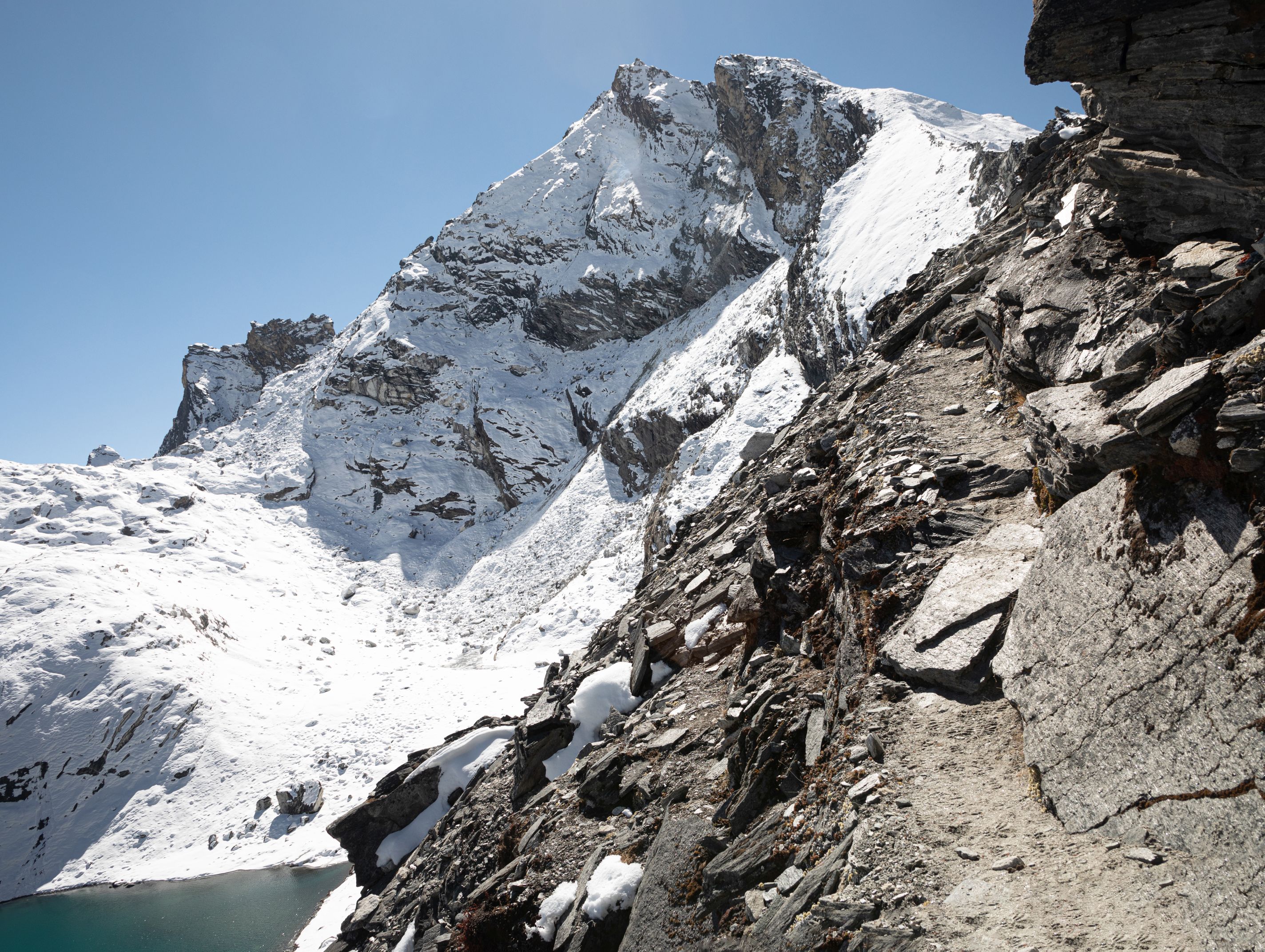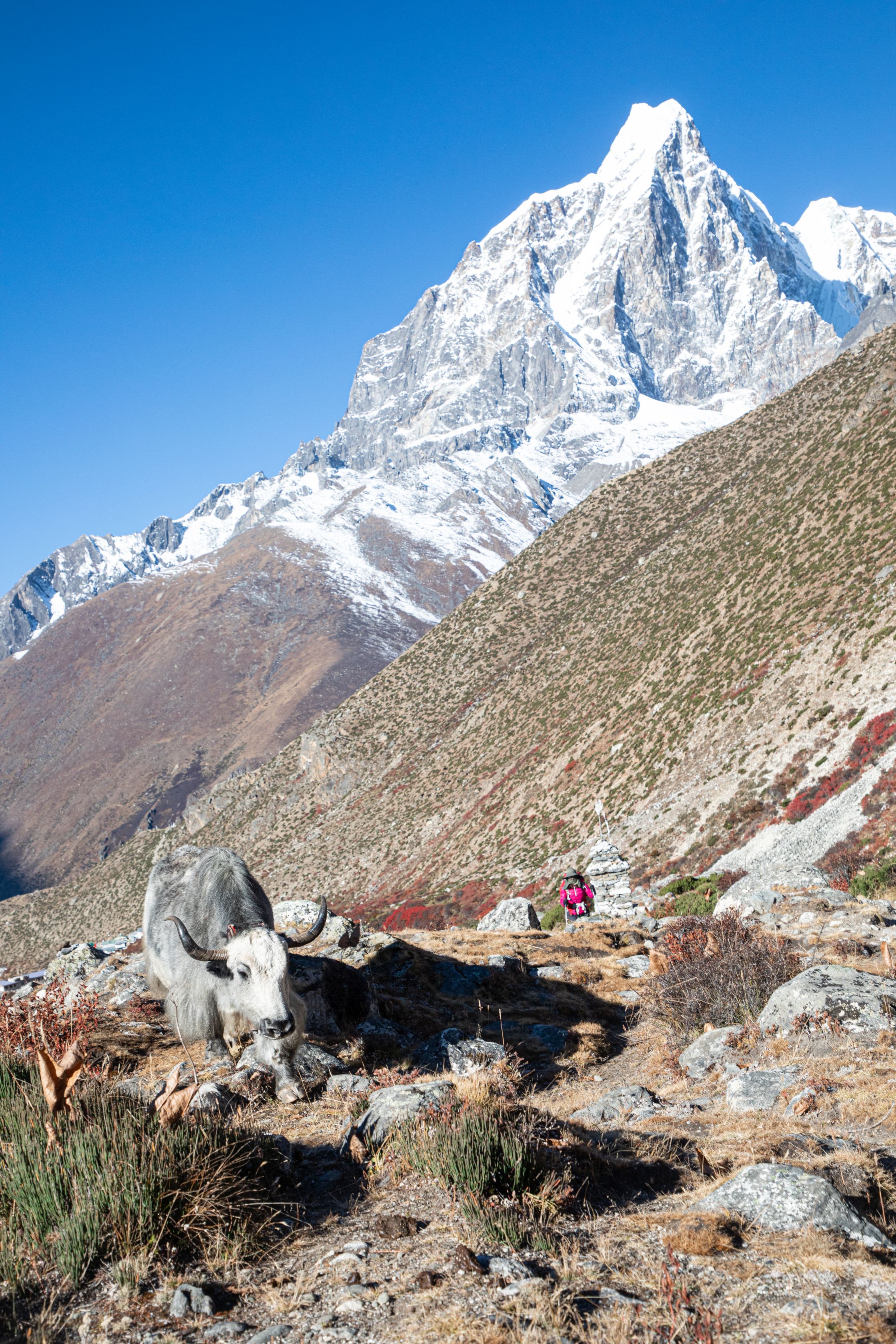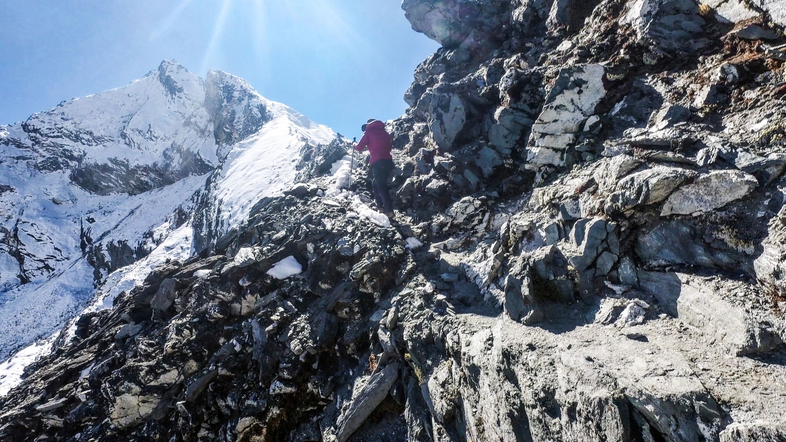 Byl vysoko nad námi na téměř strmé stěně. Bylo už asi 13:00 a potkali jsme první lidi, kteří šli opačným směrem. V tu chvíli mě zachvátily obavy. Myslel jsem, že mezi 15-16h budeme na druhé straně v Lobuche, ale těmto plně aklimatizovaným sportovně vyhlížejícím trekařům to trvalo minimálně sedm hodin se dostat sem z druhé strany, což měla být snadnější cesta. Co nás tedy ještě čeká??