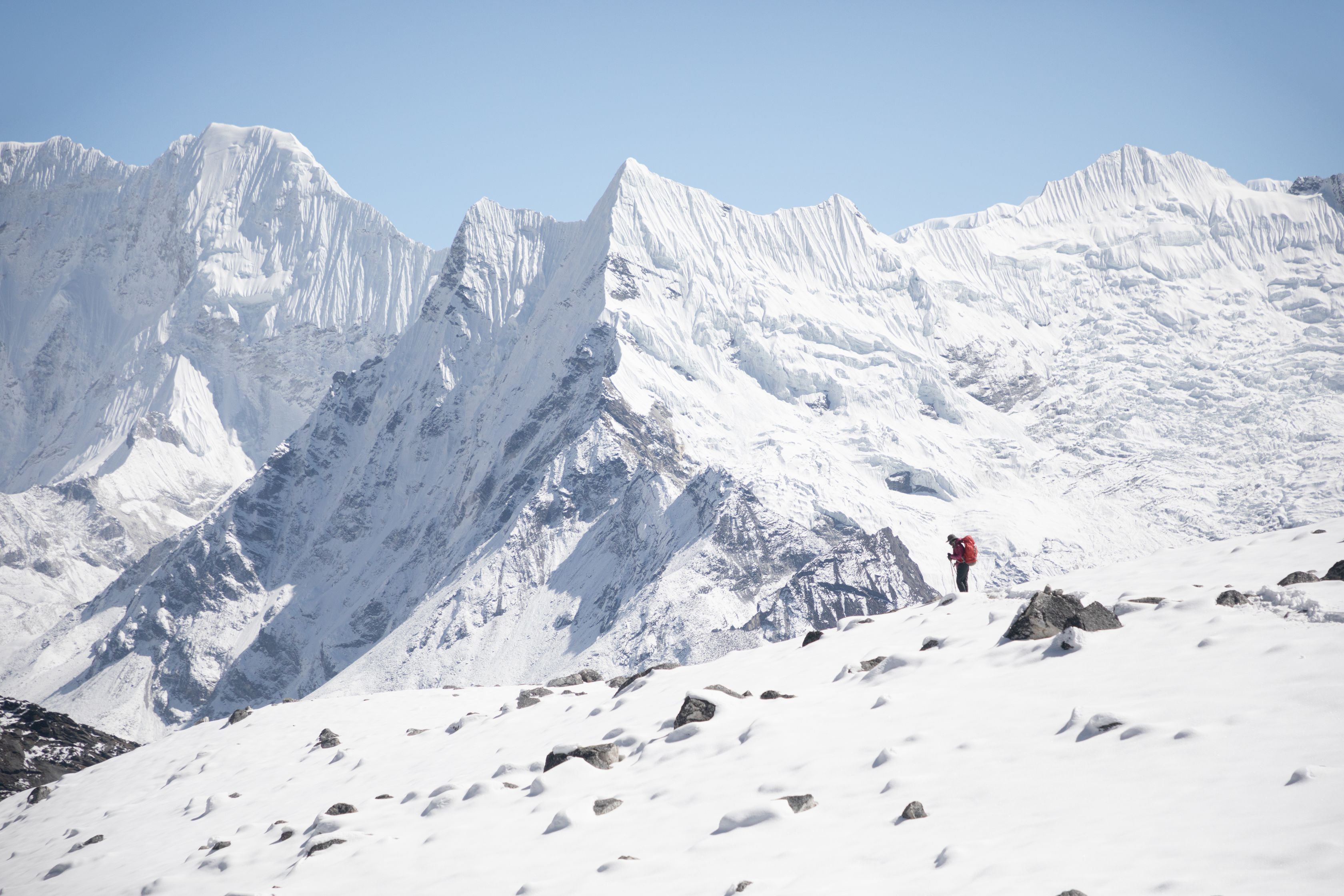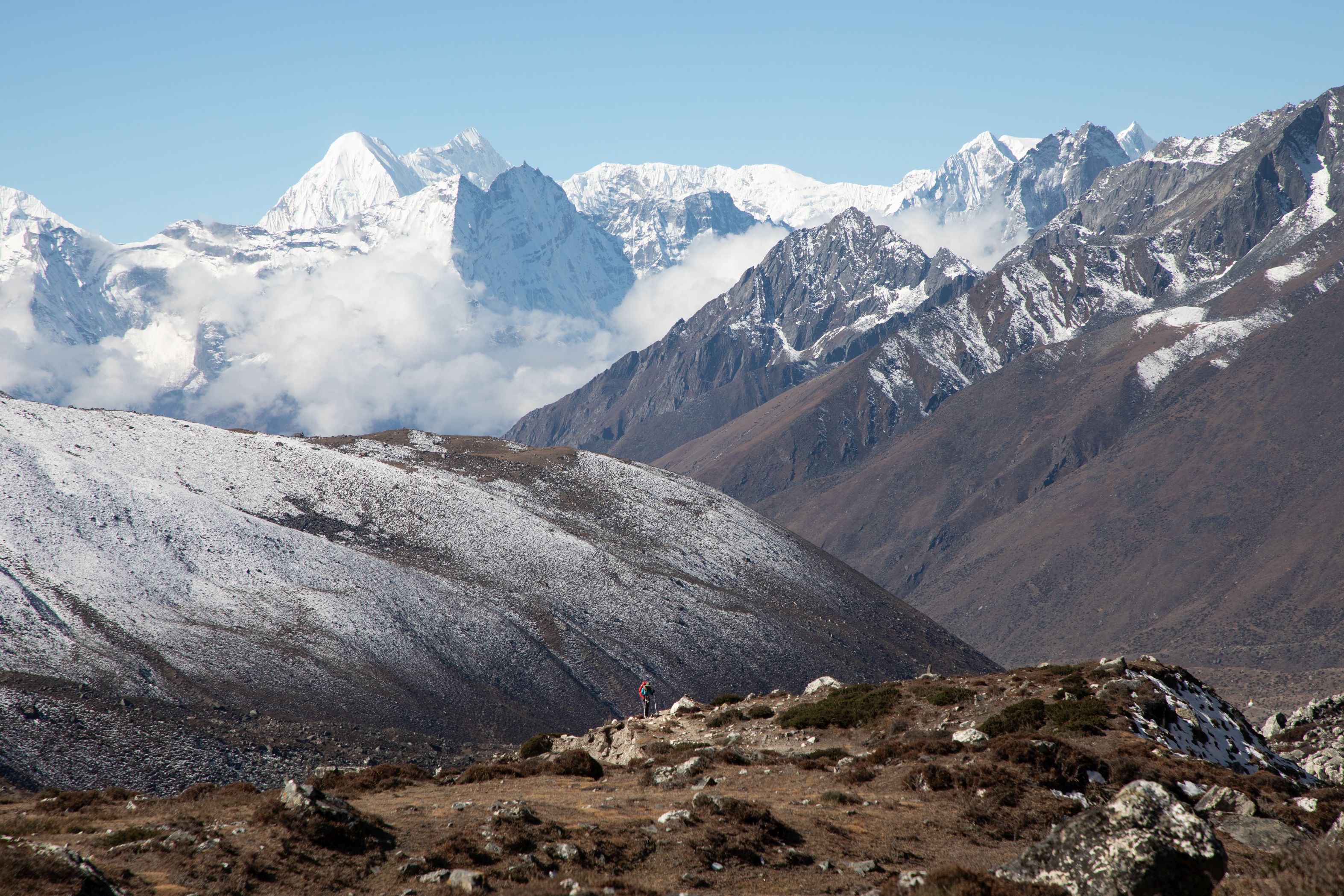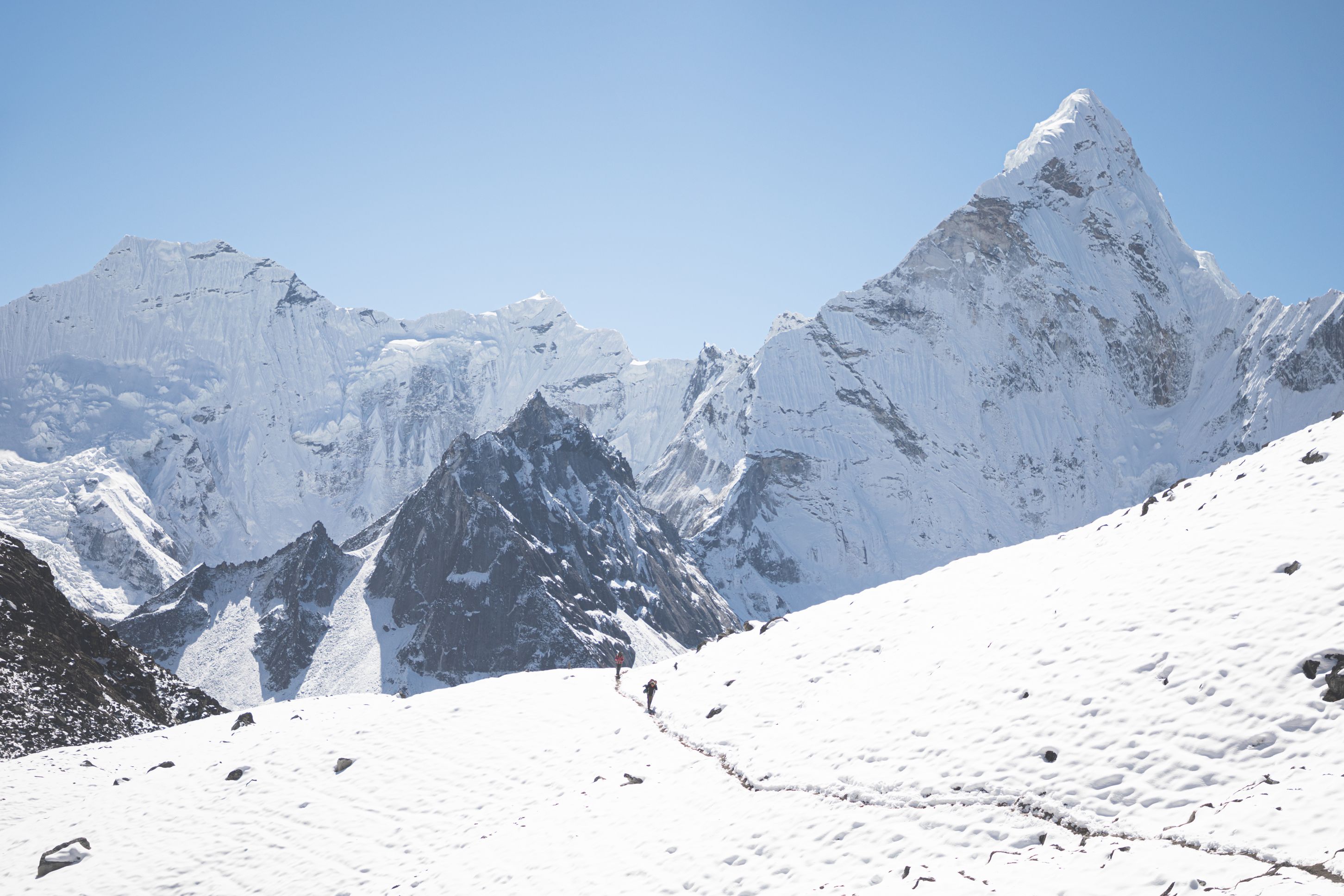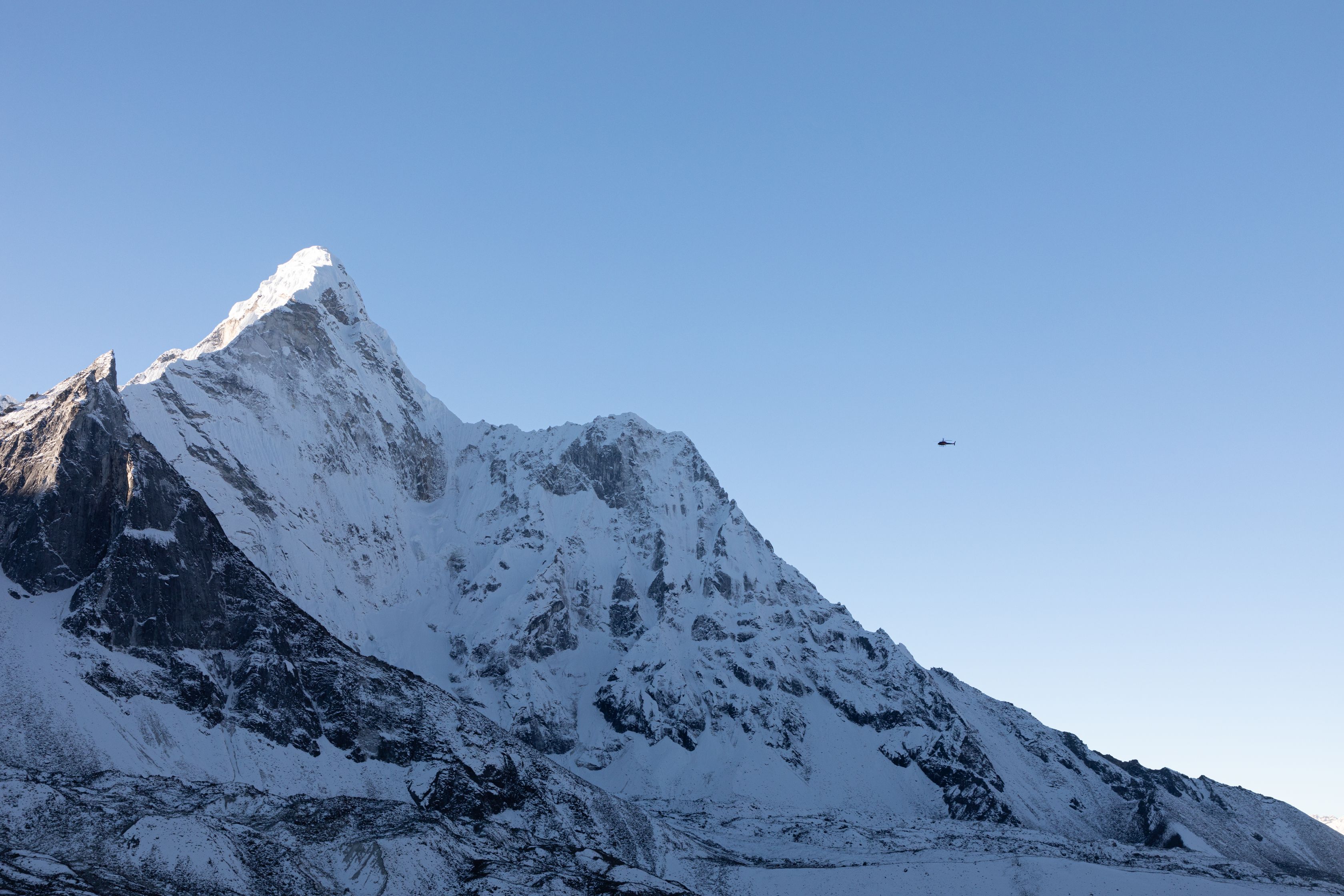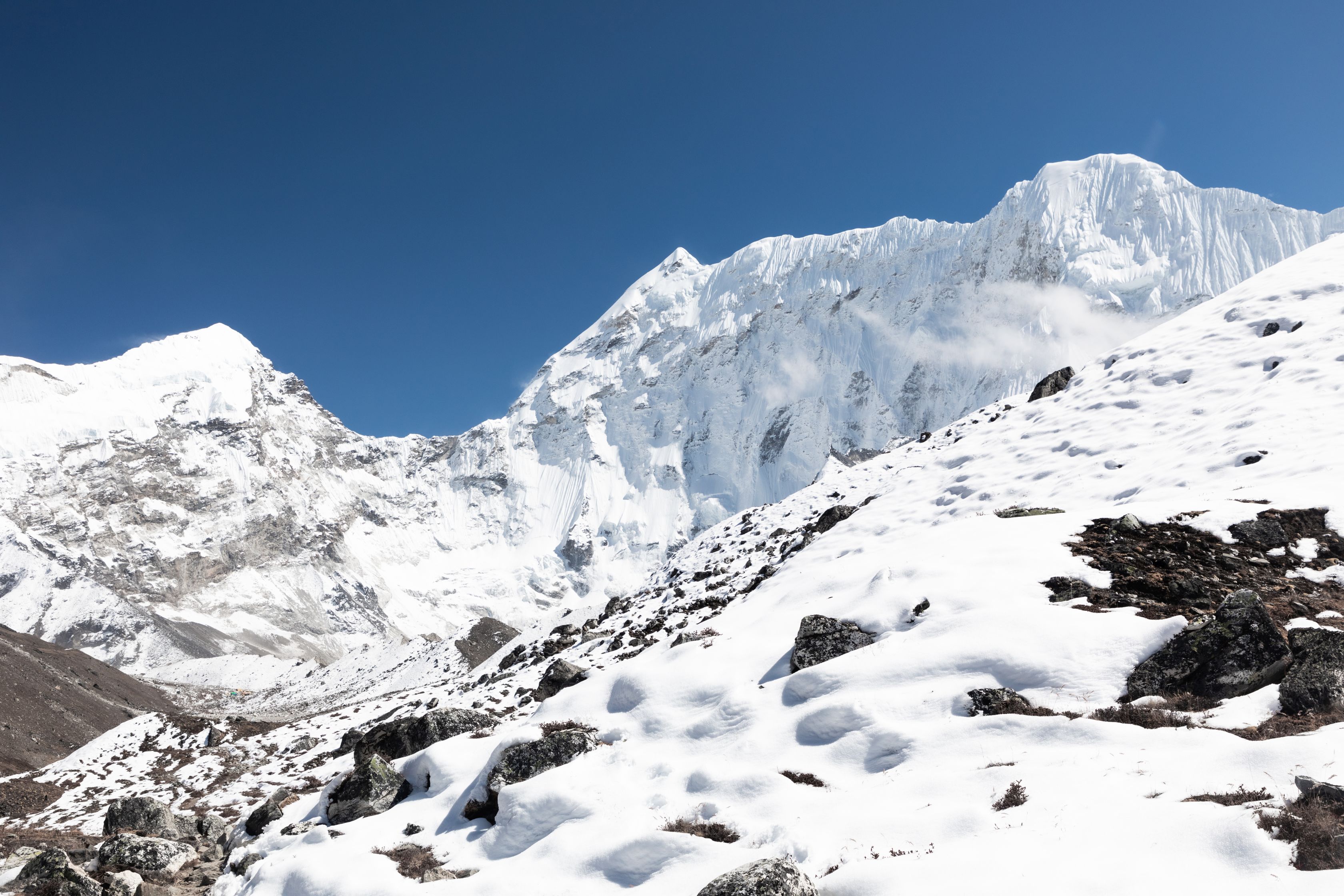 Byl vysoko nad námi na téměř strmé stěně. Bylo už asi 13:00 a potkali jsme první lidi, kteří šli opačným směrem. V tu chvíli mě zachvátily obavy. Myslel jsem, že mezi 15-16h budeme na druhé straně v Lobuche, ale těmto plně aklimatizovaným sportovně vyhlížejícím trekařům to trvalo minimálně sedm hodin se dostat sem z druhé strany, což měla být snadnější cesta. Co nás tedy ještě čeká??