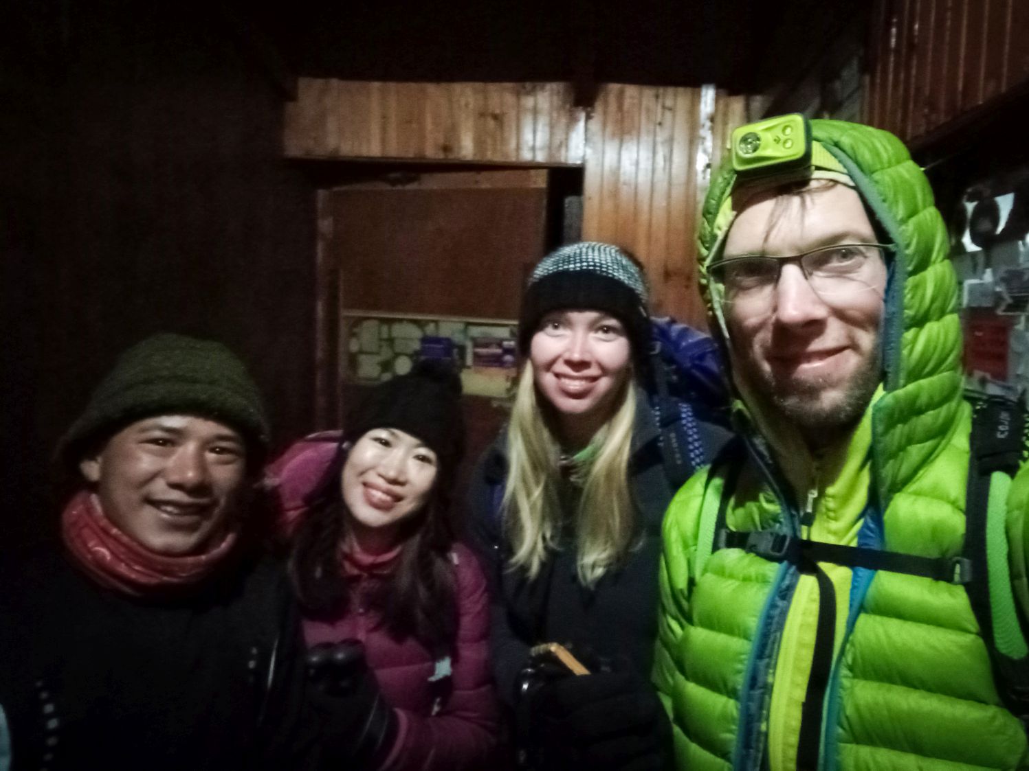 No ale pak jsme vystoupali na poslední kopeček ledovce a před námi tmu prořízla světla oken Lobuche. Zajásali jsme. Po té slavnostně vypli čelovky a chvíli pozorovali úžasně čistou noční oblohu, které dominovala jasně zářící mléčná dráha táhnoucí se napříč celým údolím. Byl to krásný silný moment uspokojení z náročného a dobrodružného výletu. Pak jsme ještě přebrodili potůček a přesně v 19:00 jsme dorazili do lodge Lombuche totálně vyšťavení.